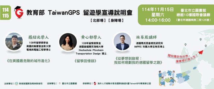1115「教育部114-115年度TaiwanGPS留遊學宣導說明會(北部場)(身障場)」,歡迎參加!
