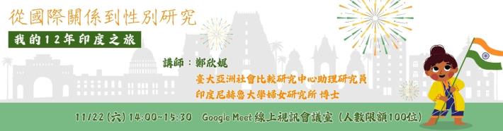 1122 「從國際關係到性別研究──我的12年印度之旅」線上講座,歡迎參加!